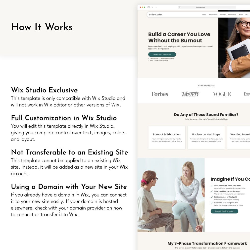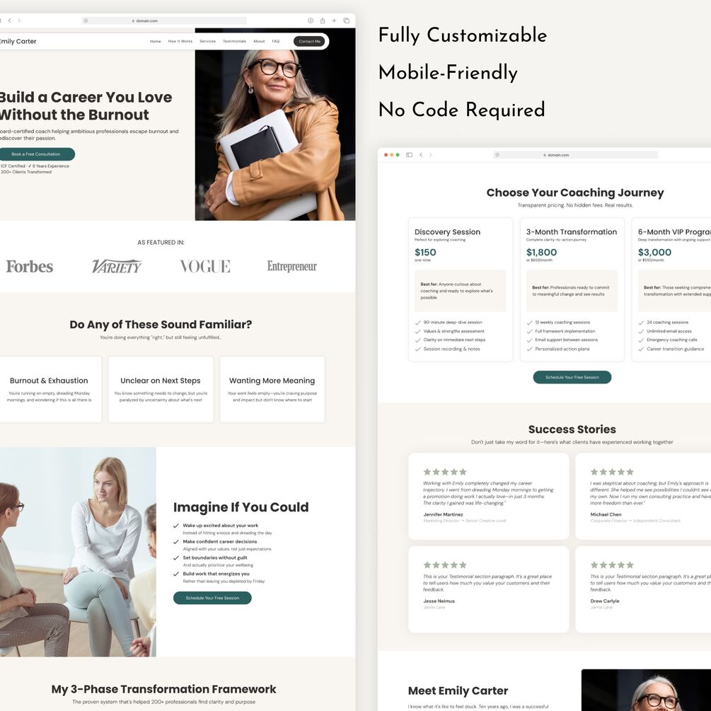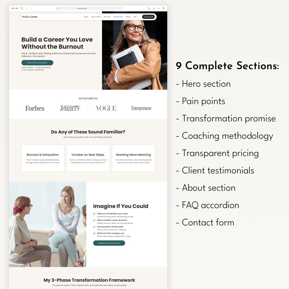 All Coaching Niches Welcome: Easily customize for your specialty (burnout recovery, career change, work-life balance, confidence building, etc.)