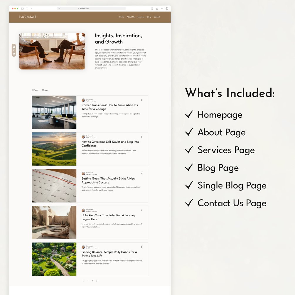 Professional Wix Studio Coaching Website Template – Designed for life coaches, wellness coaches, business coaches, relationship coaches, spiritual coaches, yoga instructors, parenting coaches, and more! This sleek and modern template is the perfect solution to establish your online presence and attract clients with ease.