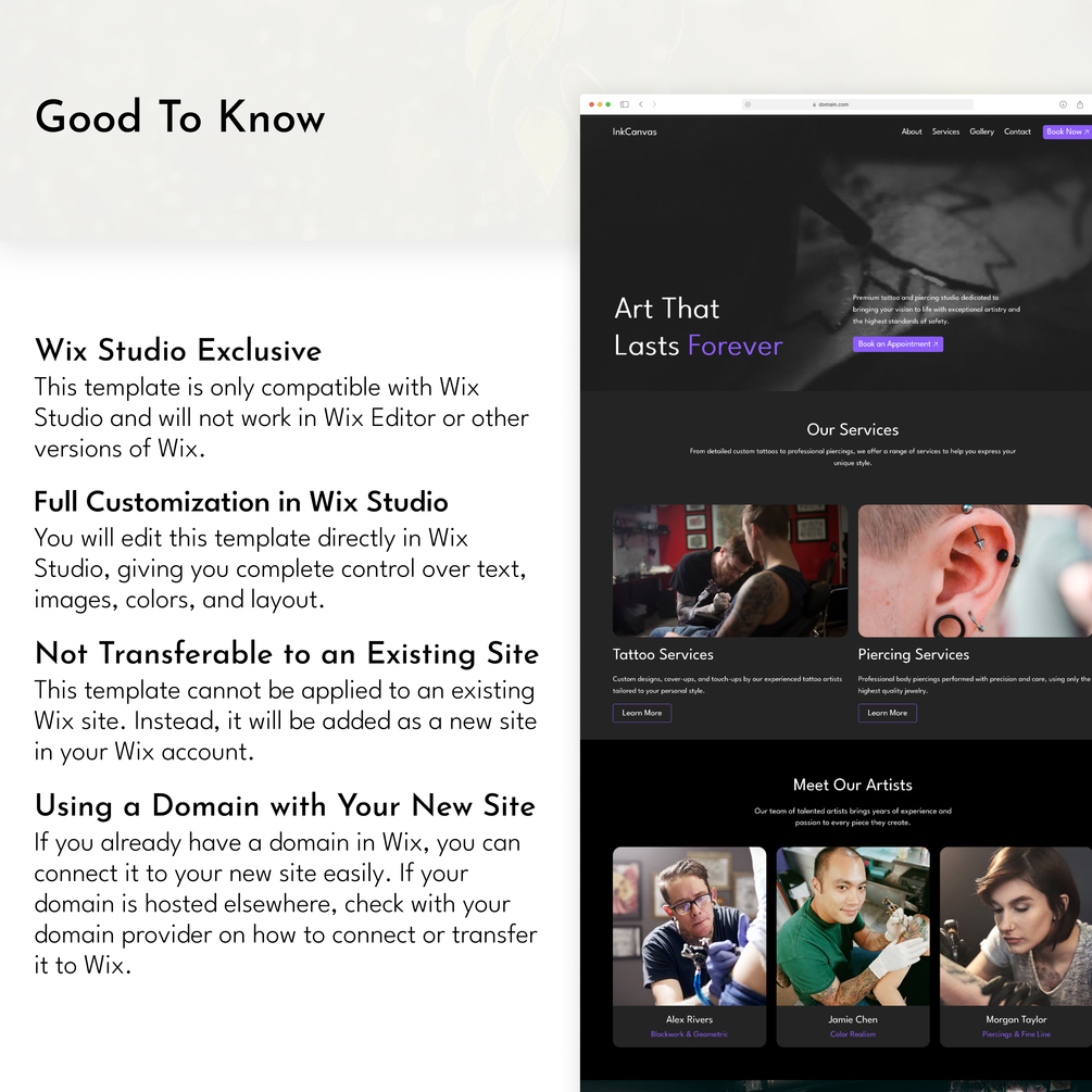 Professional Wix Studio Tattoo & Piercing Shop Website Template –