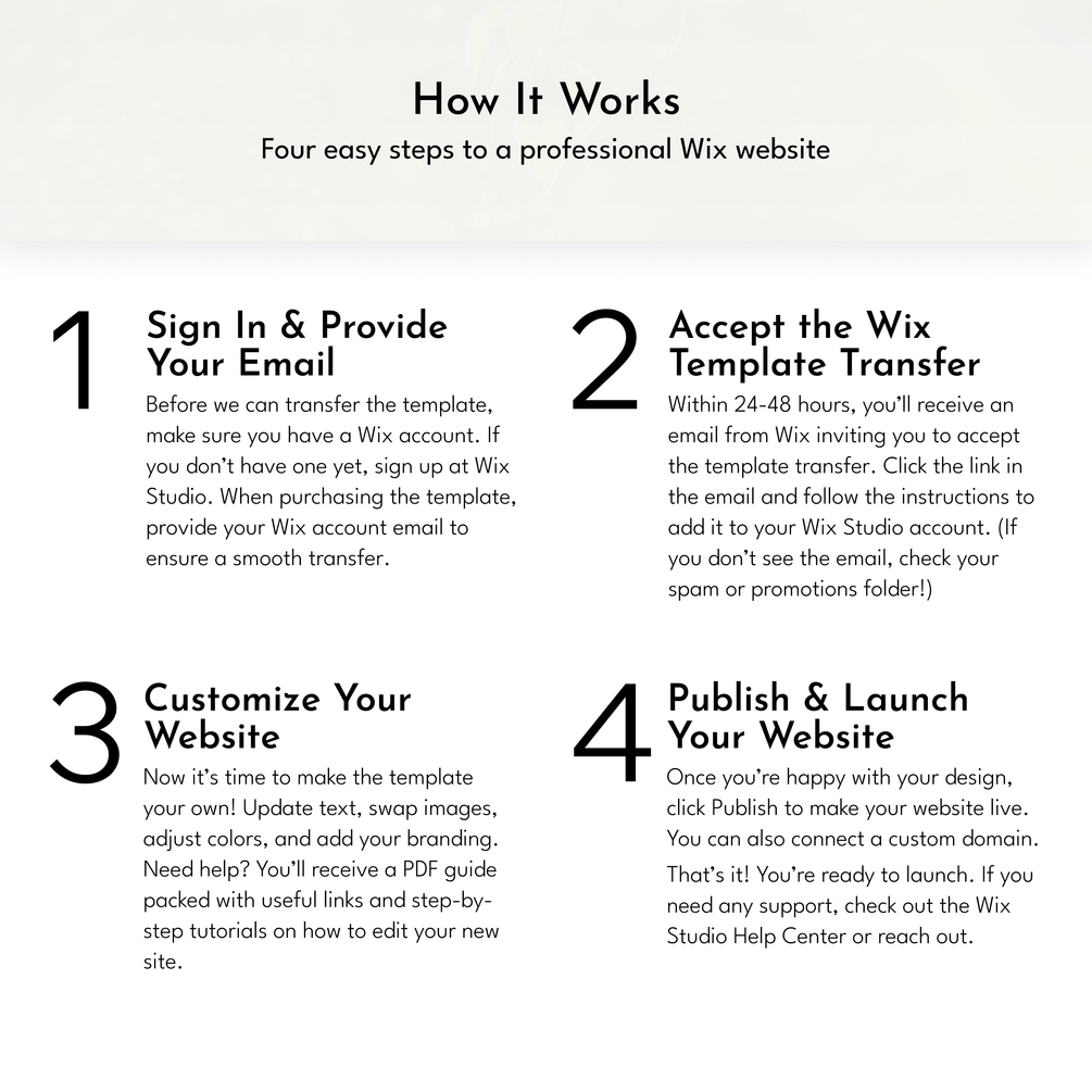3️⃣ Receive your Wix Studio site transfer email within 24–48 hours. Be sure to accept it within 3 days.